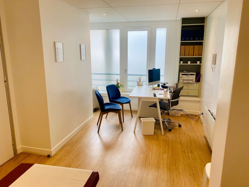 - 2 bureaux de consultation de 20 et 13 m2 environ, très lumineux (grandes baies vitrées), une salle d'attente, une salle de repos/kitchenette (micro ondes, frigo), WC.