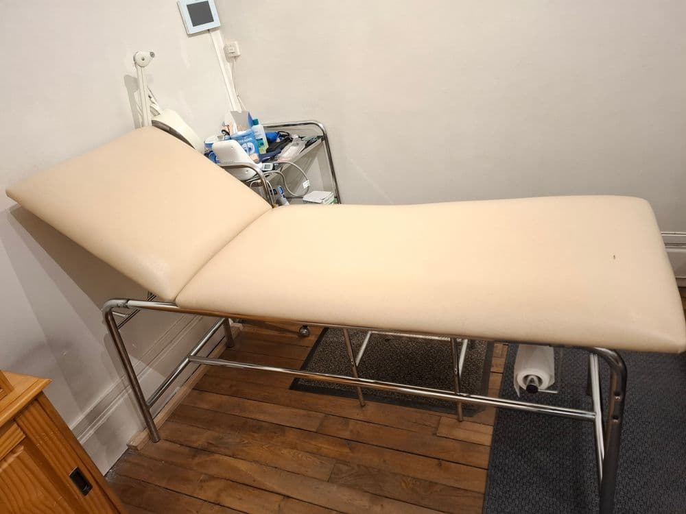 divan d 'examen  basique  sans  étrieres ,  blanc  cassé