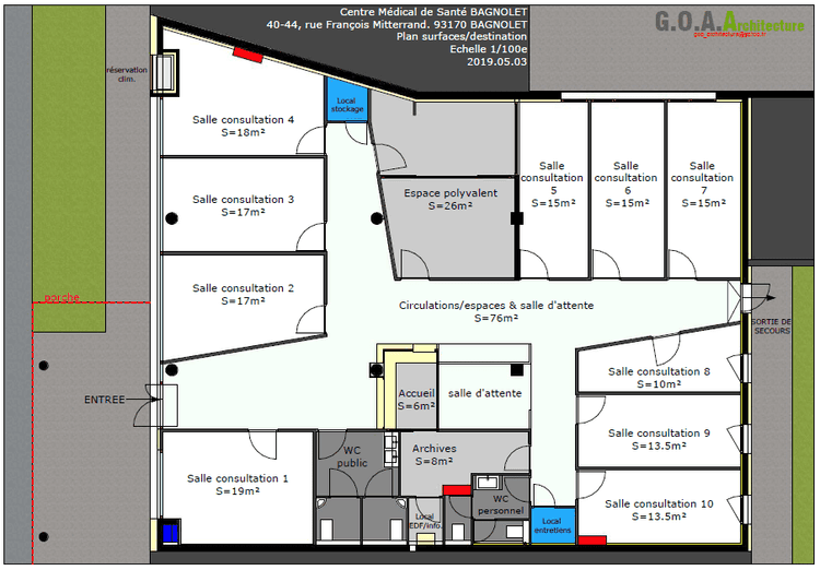 La maison de santé a ouvert en juillet 2021 dans des locaux entièrement neufs sur 300 m² situés à 300 mètres du métro Mairie des Lilas (ligne 11), dans un cadre neuf et agréable. Les locaux sont confortables, sécurisés, climatisés et disposent d'une salle de réunion / cuisine, d'un secrétariat physique, de toilettes privatives ...