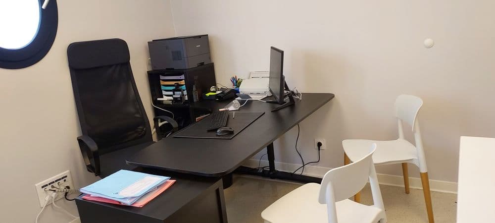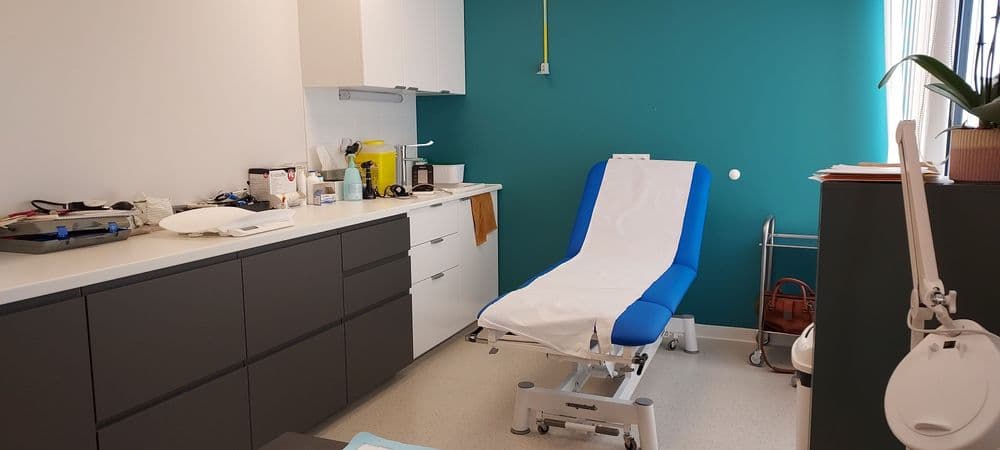 Cabinet bien équipé : table d'examen électrique 3 plans, ECG, sensorybabytest, matériel pour gynéco, etc...